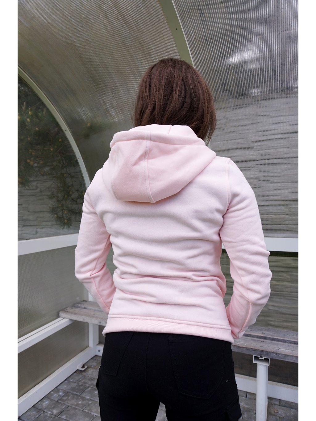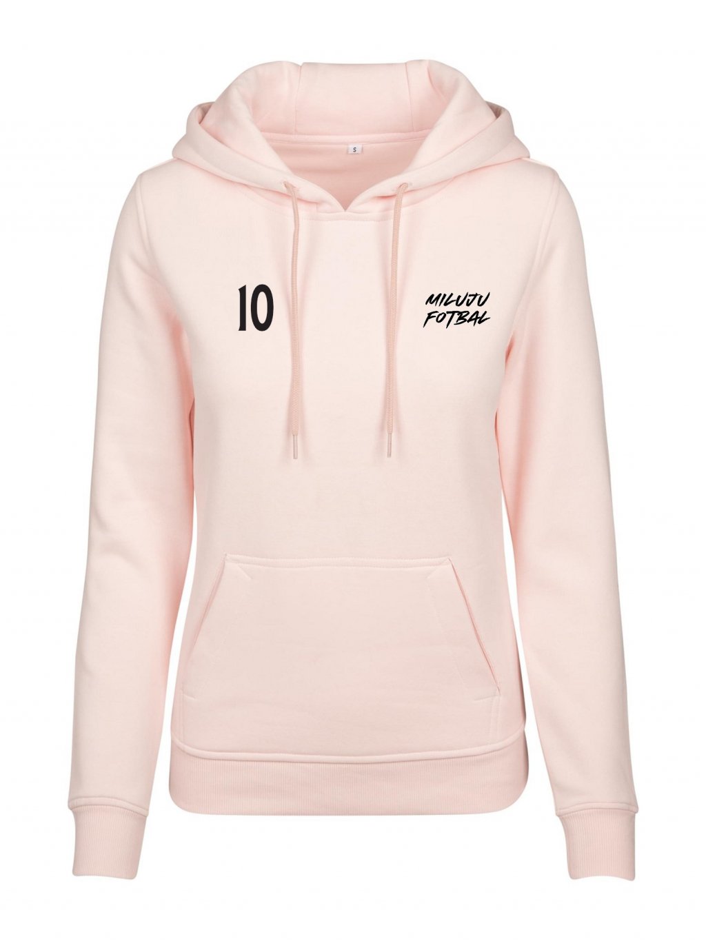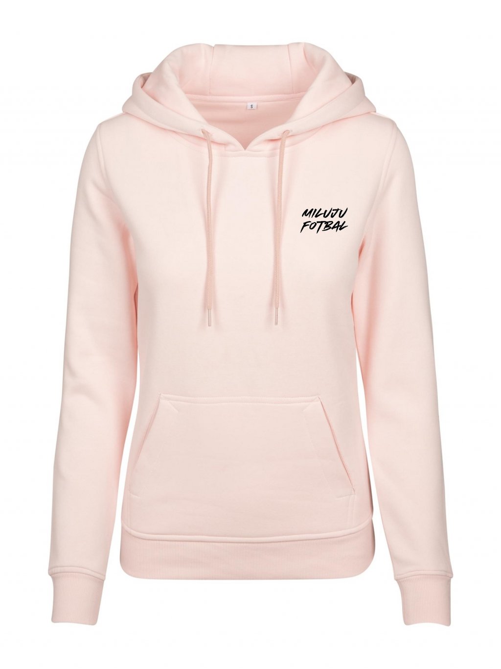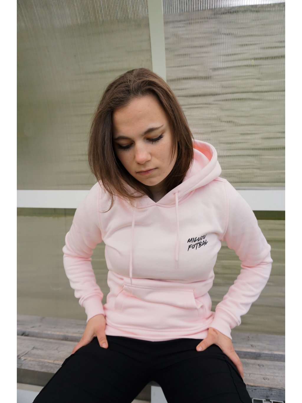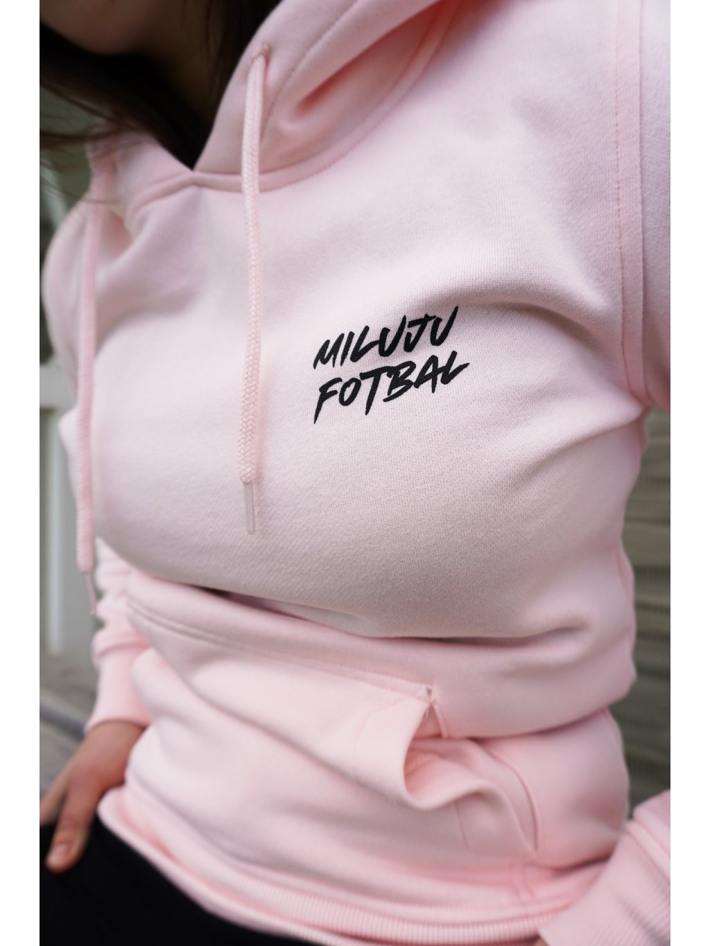 Světle růžová mikina z velmi příjemného materiálu, s potištěným logem MILUJU FOTBAL na srdci. Mikina má kapuci a klokaní kapsu.