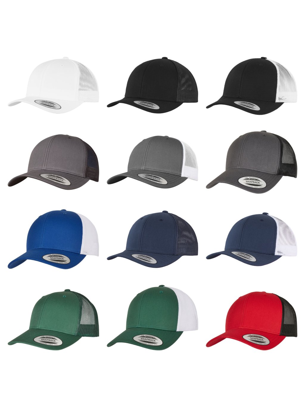 - výběr z 12 barev kšiltovek: bílá, černá, černobílá, šedá, šedobílá, šedočerná, bílomodrá, navy, bílonavy, zelená, bílozelená, černočervená