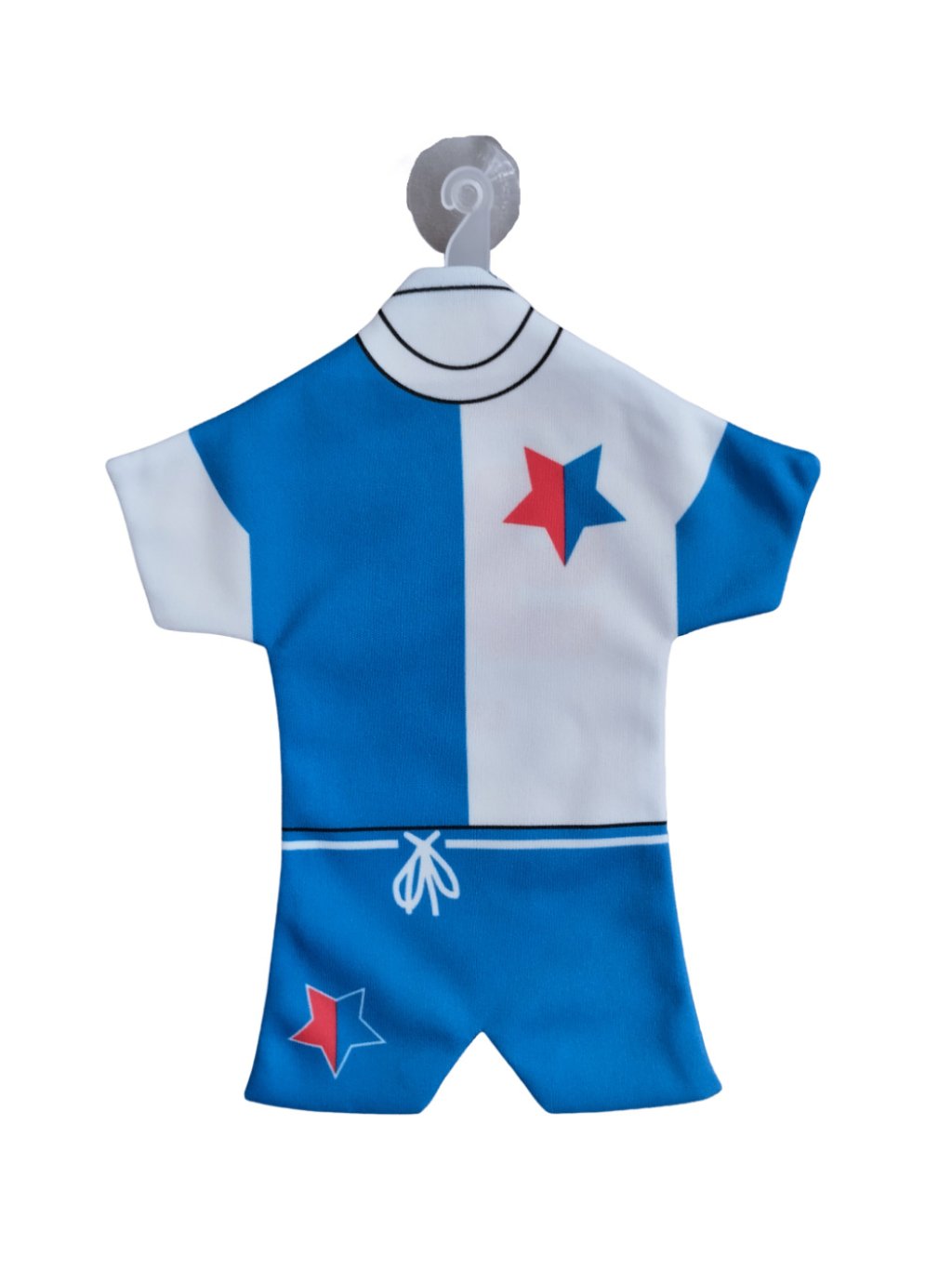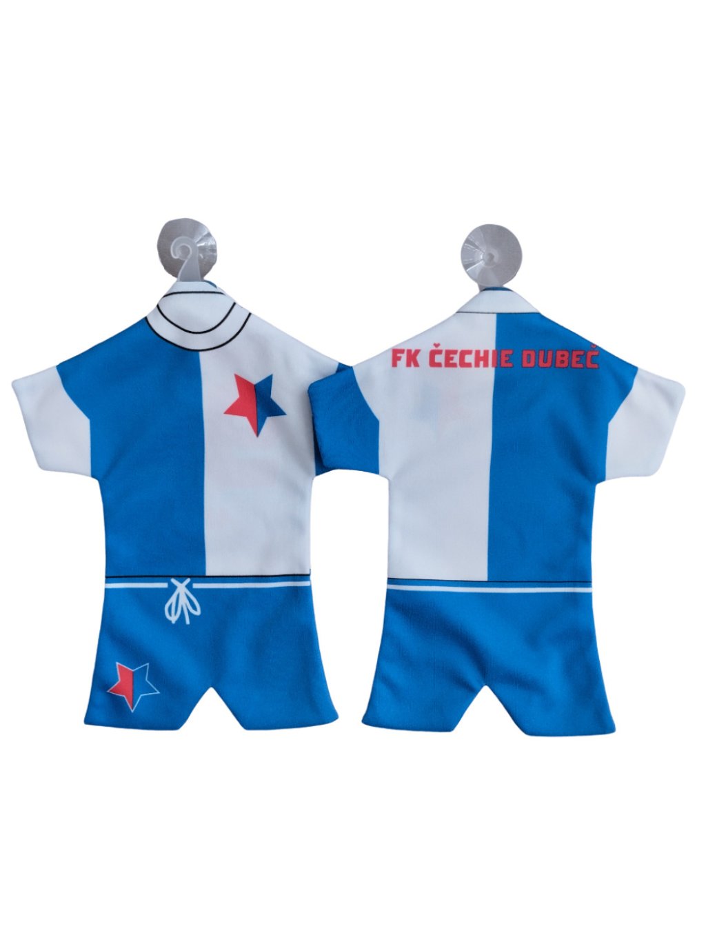 Minidres do auta v designu FK Čechie Dubeč, s přísavkou na sklo. Rozměr 18 x 16 cm.