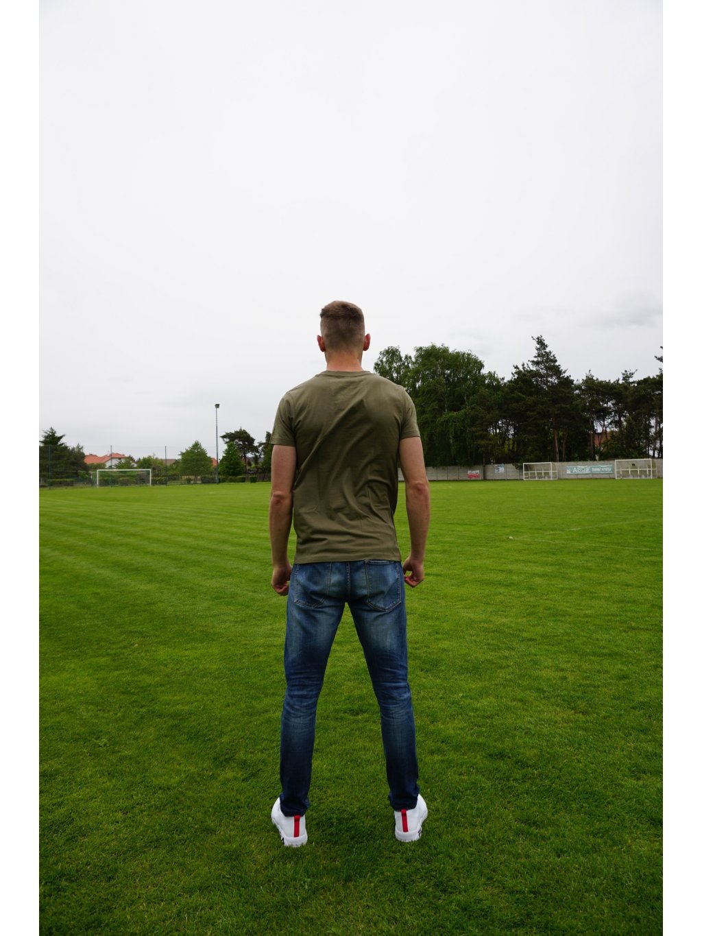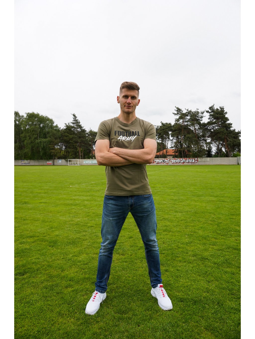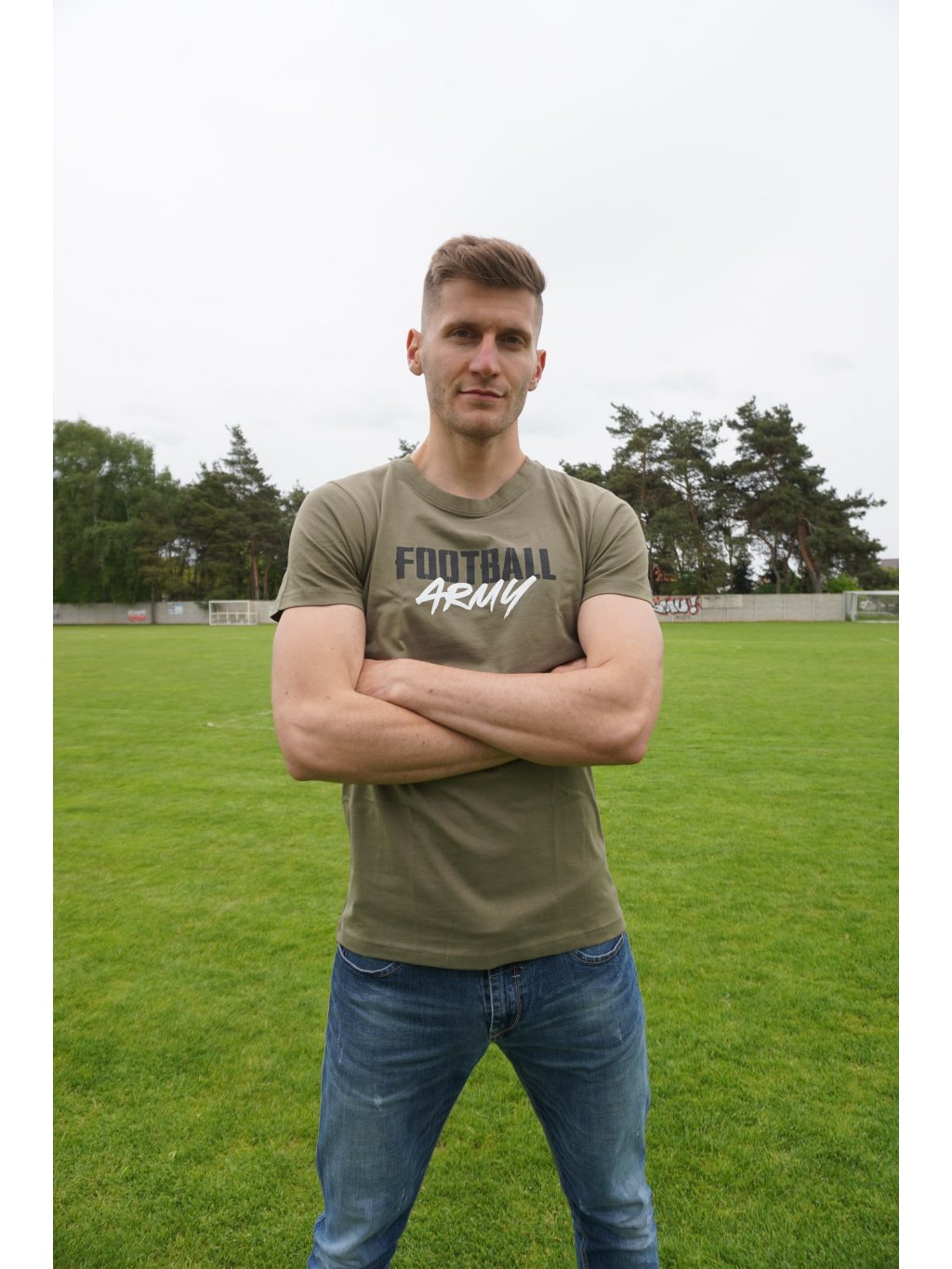 Khaki tričko s potištěným motivem FOOTBALL ARMY na prsou.