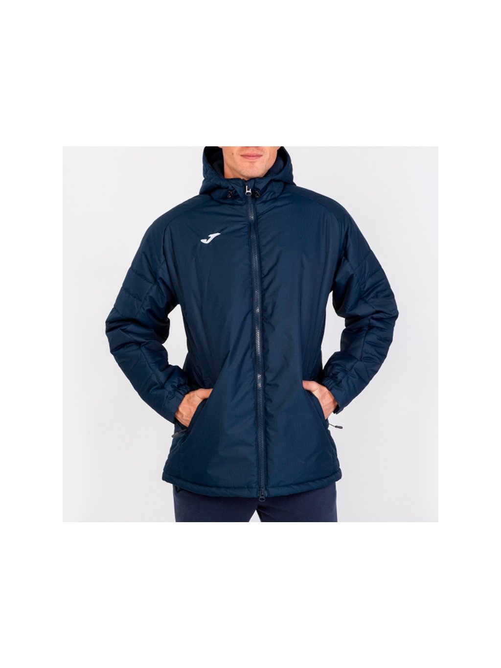 Větruodolná a nepromokavá (vodní sloupec 5000 mm) zimní bunda JOMA Cervino, celorozepínací na zip s kapucí, se 2 postranními kapsami na zip a 1 vnitřní kapsou.