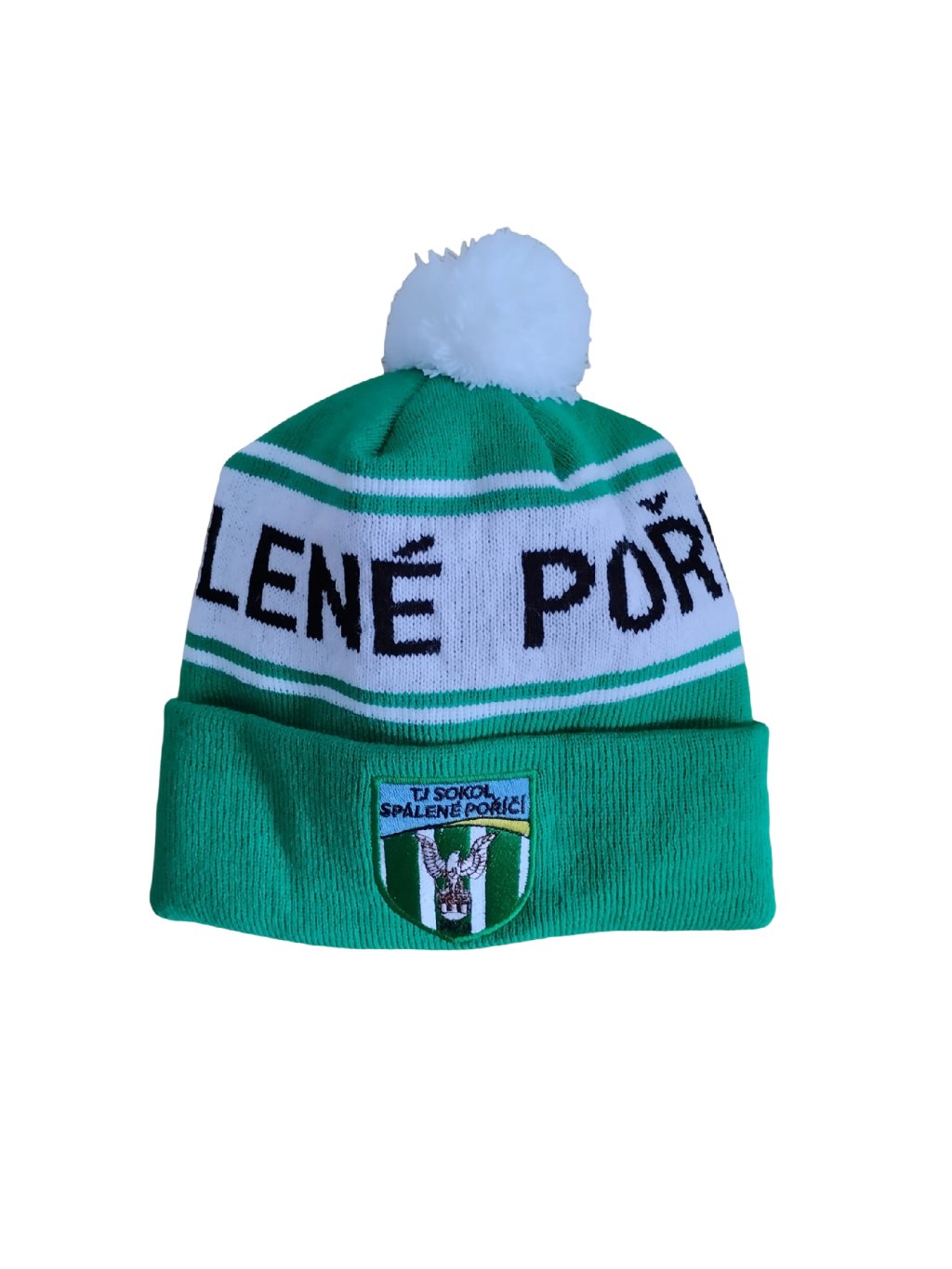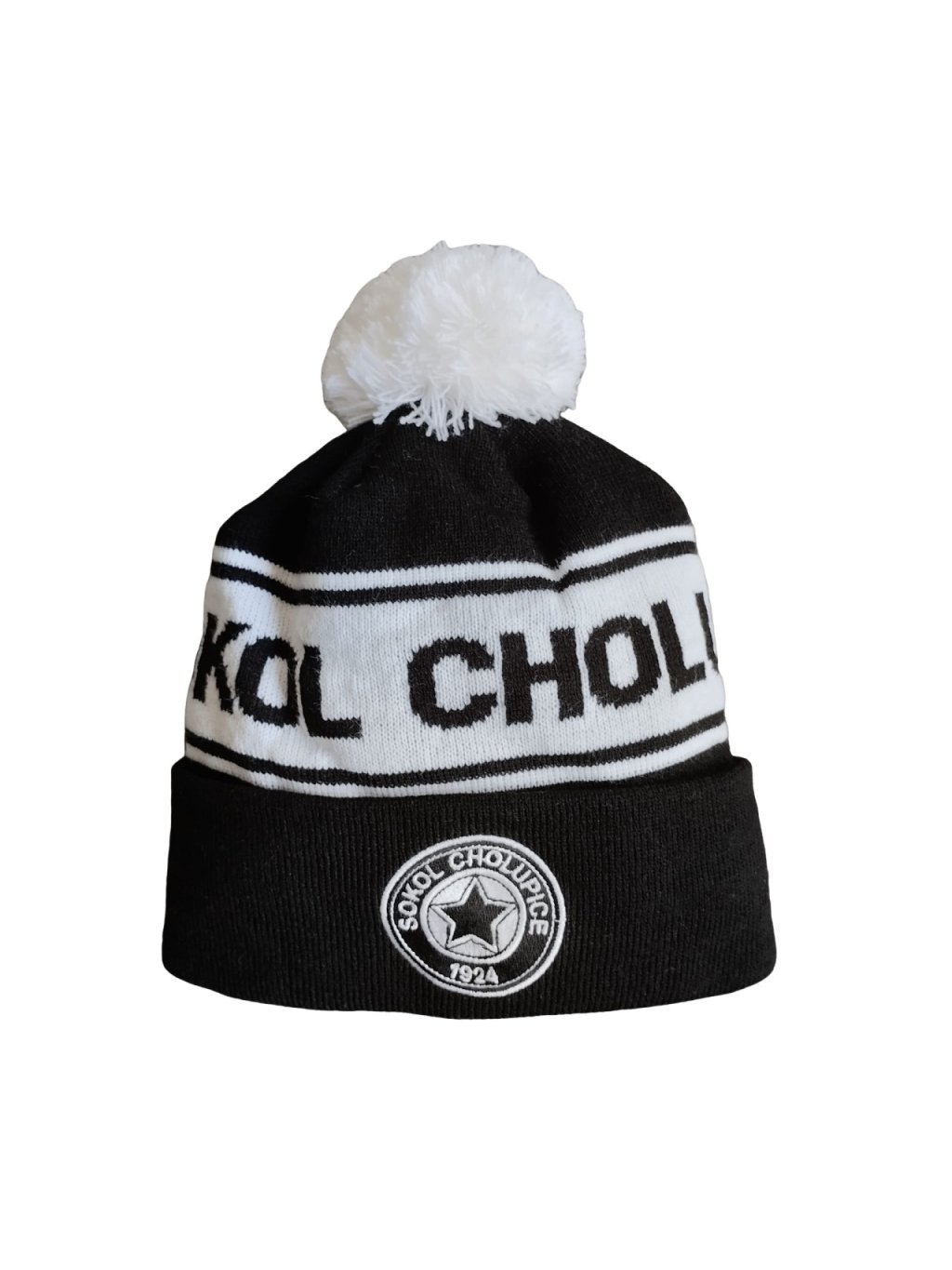 Pletený zimní kulich s bambulí, vyšívané logo na čele, 100% akryl: